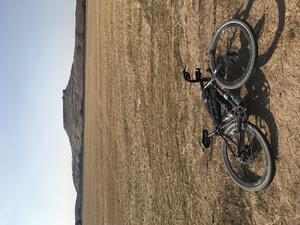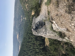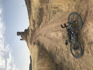 En repartant, la chaleur était accablante. J’ai progressé lentement, traversant des villages déserts et m’aventurant dans un paysage aride de monts et de vallées. J’ai finalement atteint une forêt où le terrain était plus facile, recouvert d’aiguilles de pin. Alors que j’avais franchi de nombreuses zones rocailleuses sans encombre, mon pneu arrière a soudainement explosé sur ces mêmes aiguilles de pin. Du liquide préventif s’est répandu sur la roue, la selle et le cadre. J’ai rapidement identifié la crevaison et, après avoir positionné le trou vers le bas, j’ai constaté que le liquide colmatait rapidement. Rassuré, j’ai remis le pneu en place, mais quelques bulles d’air persistaient. J’ai décidé de sécuriser la réparation en insérant une mèche.