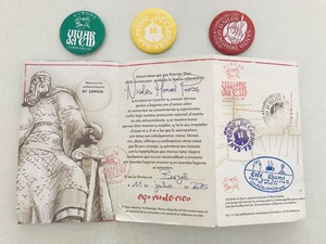 Chacun avait son “salvoconducto” et un défi : collecter un maximum de « sellos » cad de tampons et de “chapas” cad de badges. Le soir, nous comparions nos prises, échangeant sur les lieux visités et les rencontres faites. Les “chapas”, offertes gratuitement, portent le nom du village et sont souvent réservées aux marcheurs et cyclistes, symbolisant la récompense de l’effort.