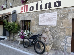 Cette journée a été pénible en raison d’un vent de face persistant depuis la veille. De gros nuages et la pluie m’ont incité à rentrer par la route sur la fin. Vu le peu de marge entre mes pneus de 40 et 42 mm et le cadre, je n’aurais jamais pu continuer sur les chemins sans devoir dégager la boue en permanence. Finalement, je suis arrivé tôt (vers 15h30) pour voir la Vuelta en direct et visiter Molina de Aragón, avec ses imposantes murailles que l’on aperçoit de loin.