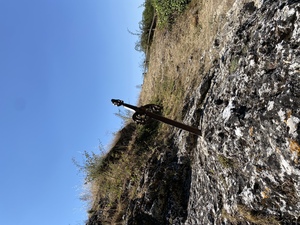 En quittant Santo Domingo de Silos, je manque de passer à côté d’une épée du Cid plantée dans un rocher, telle celle d’Excalibur. Heureusement, Isabel prend la photo. Belle image !