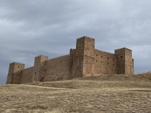 Je reprends la route et me retrouve rapidement sur des pistes en terre, traversant des zones d’élevage porcin à perte de vue, en plein désert. J’aperçois des aigles dans le ciel. Ces rapaces sont nombreux dans la région. Au loin, je distingue une des plus belles forteresses du voyage : le château de Montuenga de Soria. Très photogénique, il se dresse à l’horizon. J’en fait le tour sous la chaleur (plus de 35°C), la vision de cette ruine dans la poussière donne une impression d’un autre monde.