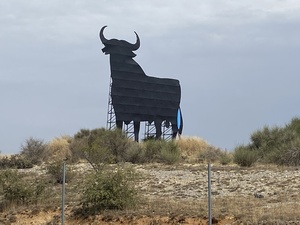 En consultant la carte, je remarque que les célèbres taureaux Osborne sont situés non loin de là. Je demande aux propriétaires du restaurant comment y aller. Ils nous indiquent un itinéraire par des petites routes et nous réussissons à prendre une photo du taureau Osborne. Dans l’après-midi, en repartant vers Medinaceli, nous apercevons un autre taureau. Nous faisons un détour pour le photographier.