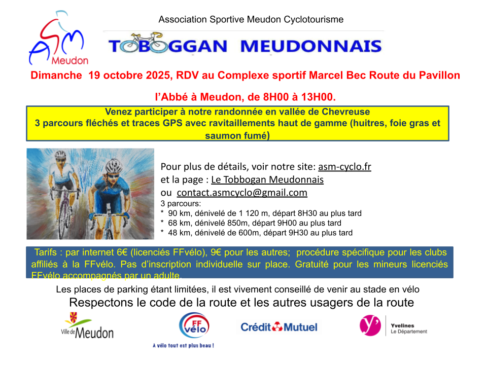 Le Toboggan Meudonnais 2025 Quand dim 19/10/2025 07:30 - 13:00 Ajouter au Calendrier Télécharger ICS Calendrier Google iCalendar Office 365 Outlook Live Type d’évènement Cyclotourisme Voici la trace de Neuilly à Meudon LE TOBOGGAN MEUDONNAIS 2025