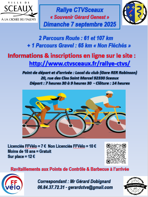 Rallye CTVS Quand dim 07/09/2025 Toute la journée Ajouter au Calendrier Télécharger ICS Calendrier Google iCalendar Office 365 Outlook Live Type d’évènement CoDep 92 Cyclotourisme Gravel Route